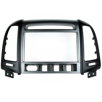 Рамка переходник для установки магнитолы стандарта 2 DIN в штатное место в автомобили Hyundai Santa Fe 2006 - 2012. Изделие выполнено из качественного пластика, имеет цвет и структуру приборной панели автомобиля.