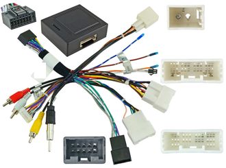 CAN-модуль / адаптер усилителя в комплекте. Модуль позволяет сохранить оригинальную камеру заднего вида и бортовые настройки, а также оригинальный усилитель на автомобилях в дорогих комплектациях.